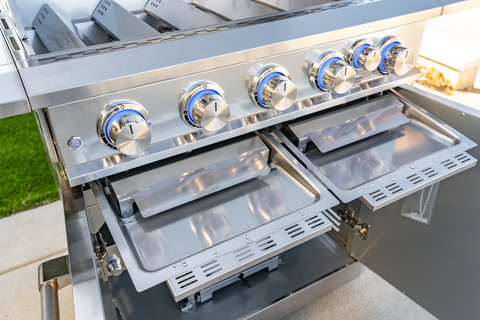 - Built-in tank pull-out tray on ball-bearing slides (propane tank not included)